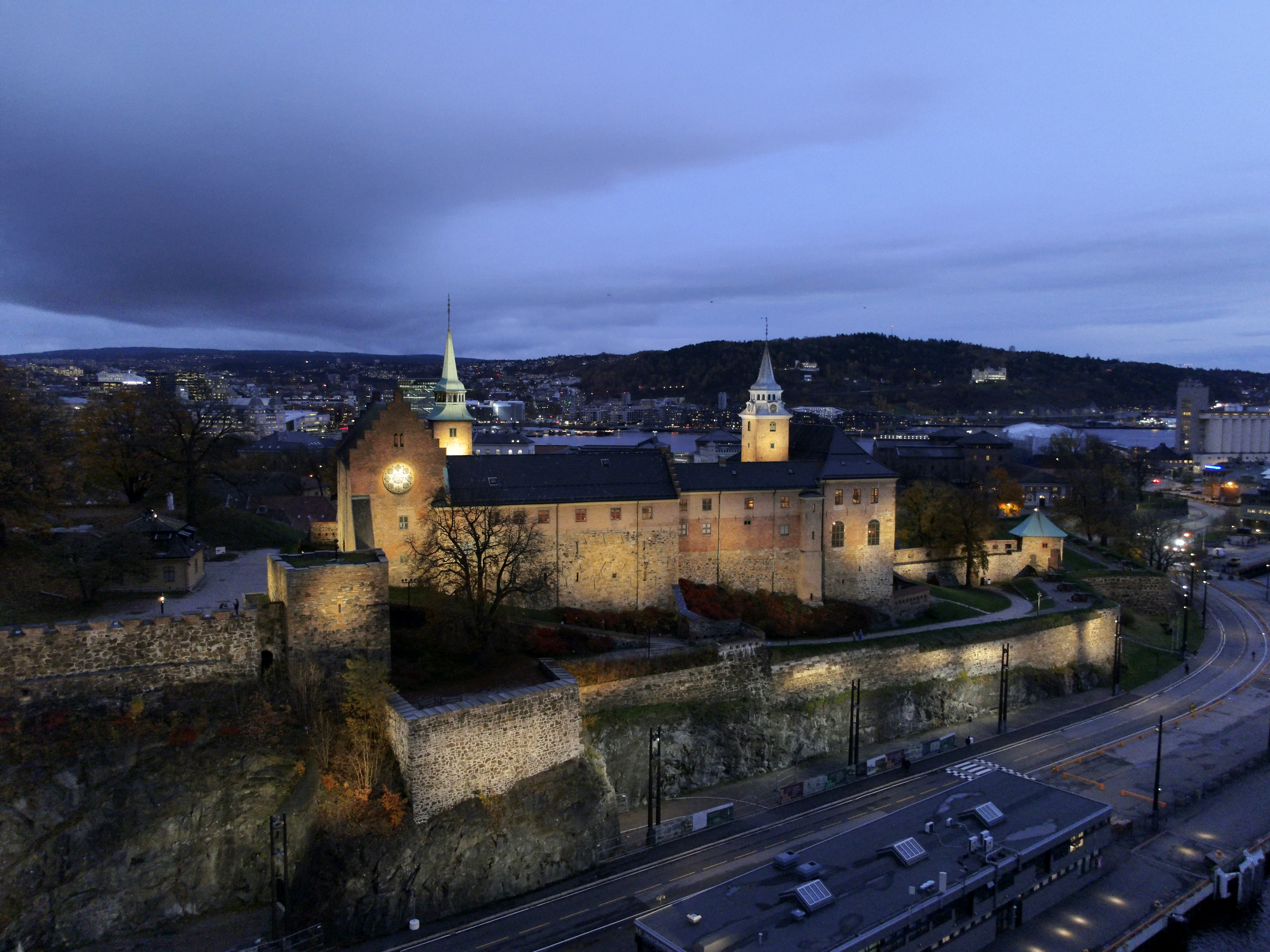 Akershus festning ligger midt i Oslo, med utsikt over Oslofjorden. Festningen er et historisk landemerke og et viktig kulturikon i byen. Den ble oppført på 1200-tallet og har siden vært både kongelig residens og militært anlegg. I dag er området åpent for publikum og et av Oslos mest populære turistmål.