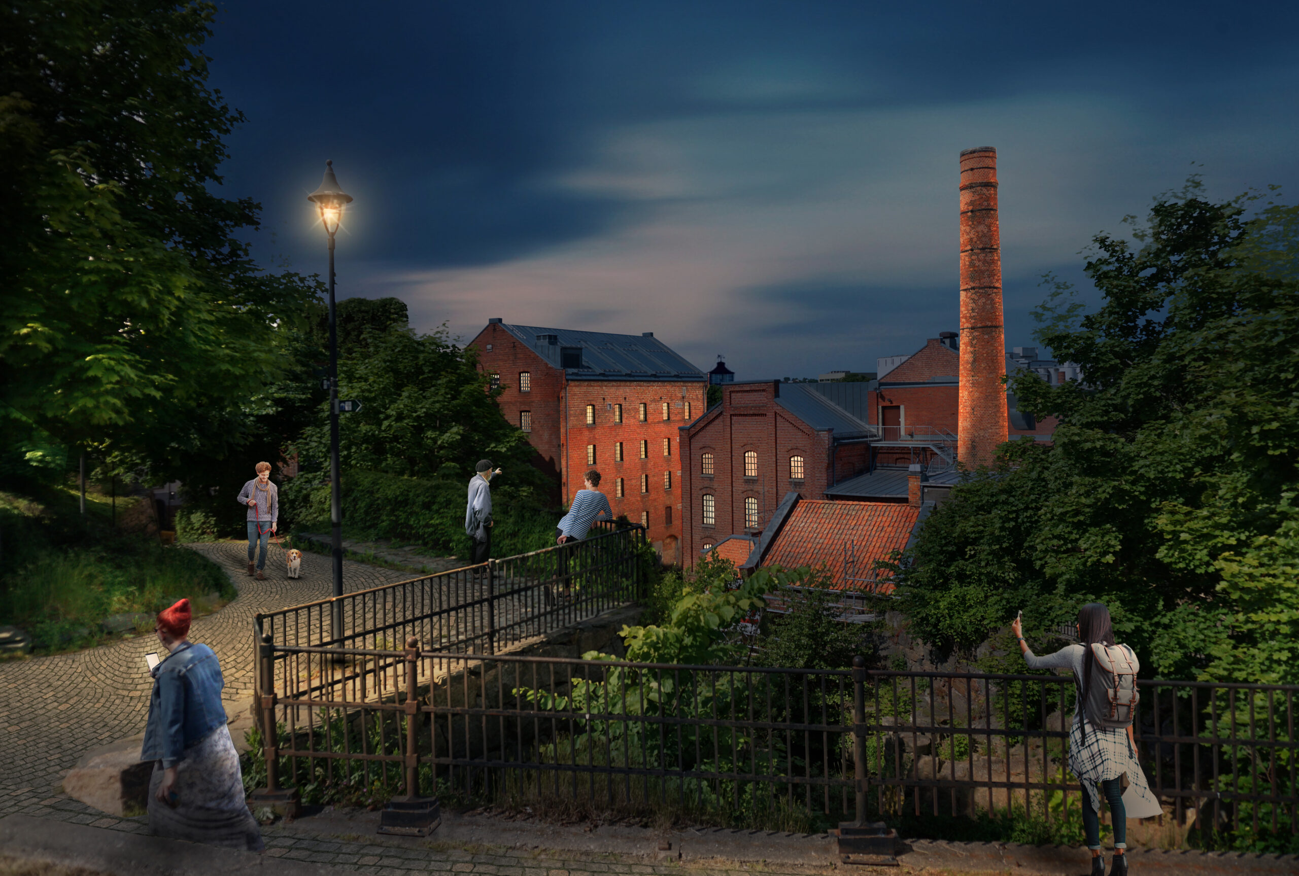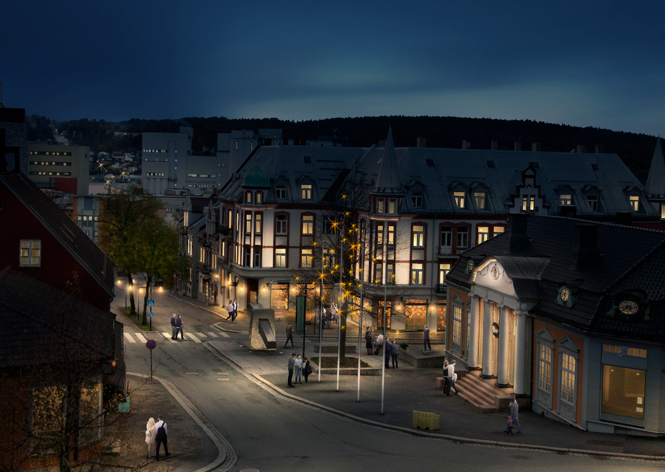 LIGHT: The lighting concept “Moss from the inside” will strengthen the function and identity in Moss center. Identity creators such as Sentrumsaksen, Kulturkvartalet, the transverse axes towards the seafront are especially emphasized in addition to selected highlights. The purpose is to clarify axes and connections, and show the best qualities in each area. Glow from within is brought out in the warm brick colors and historic atmosphere in buildings and environments.